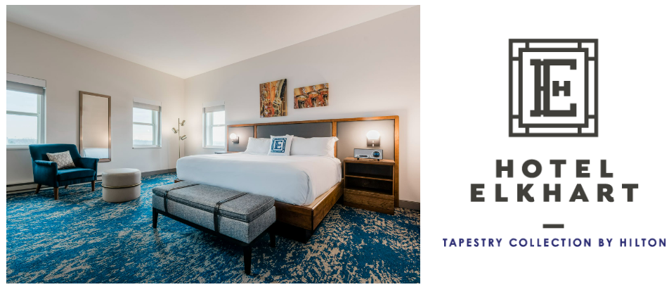 Located in the heart of downtown Elkhart, Just 8 miles from RV/MH Hall of Fame. Hotel Elkhart is Elkhart’s only full service hotel with two Restaurants, High Note Rooftop Bar, and within walking distance to shops, restaurants and Lerner Theatre.